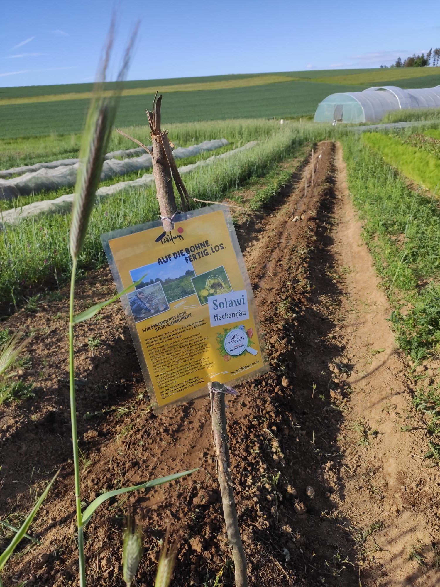 Vielleicht haben die einen oder anderen schon die Hinweise auf unserem Acker entdeckt: Wir machen mit beim blühenden Sojaexperiment 1000 Gärten des Tofu-Herstellers Taifun GmbH gemeinsam mit der Universität Hohenheim!